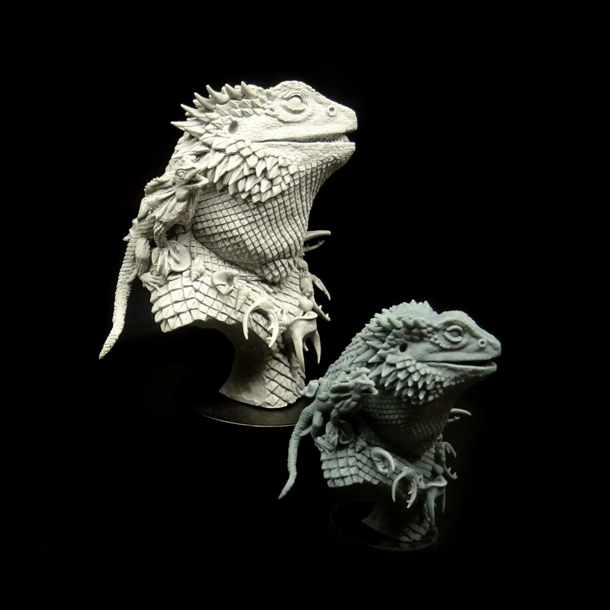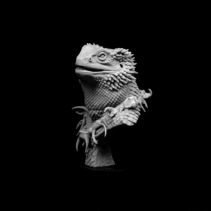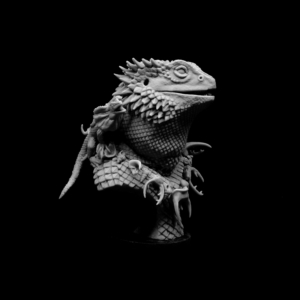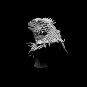 He’s always accompanied by many little reptiles, geckos, frilled lizards or little bearded dragons.