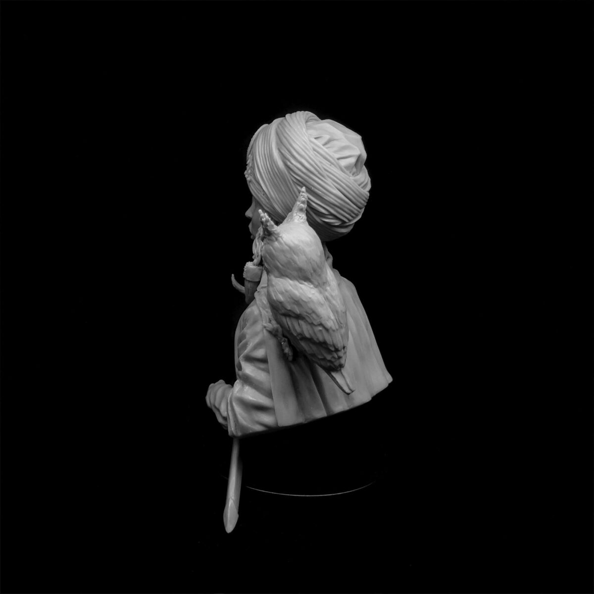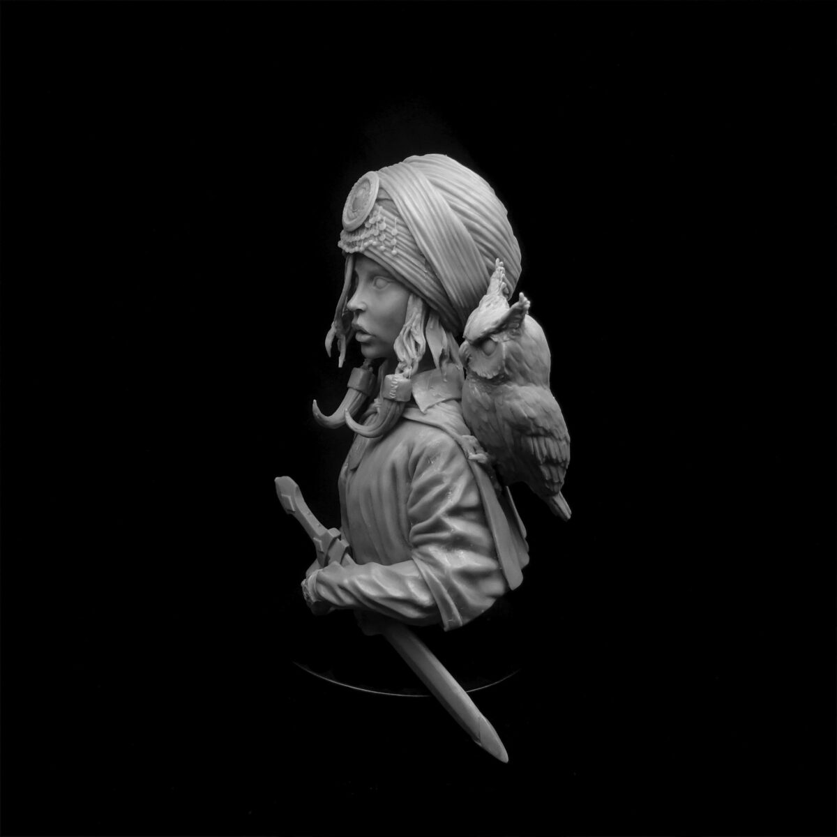 Comes in 6 parts. Unassembled and unpainted. Base not included.